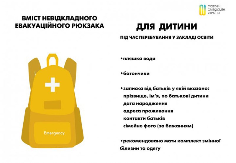У рюкзак рекомендується покласти наступне: